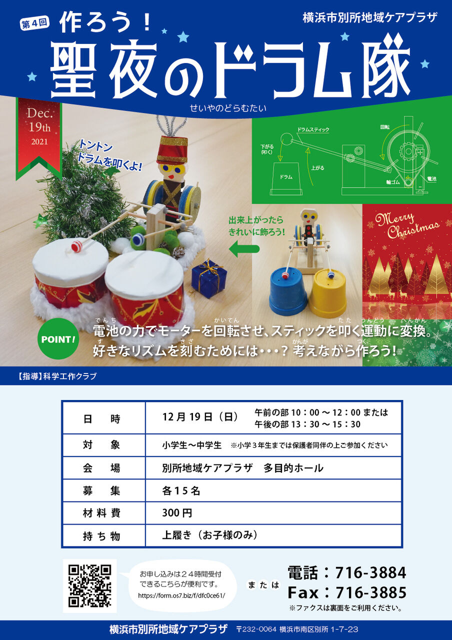 出来上がったらみんなで一緒にドラムを叩く「ドラム隊」として演奏させて遊びましょう!今回も午前と午後の2回開催です。ご参加お待ちしています!